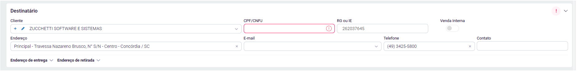 Ajustes aos dados de clientes dentro da NF-e, apresentando corretamente o ícone da validação quando conter erros de preenchimento.