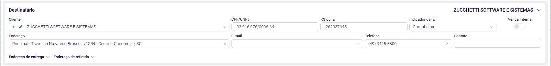 Após realizado ajustes aos campos é apresentado novamente o nome do cliente / fornecedor normalmente >