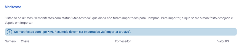 - Também foi ajustado a mensagem na tela de importação de Manifestos na Nota de Compra