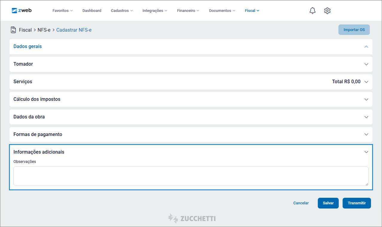 Preencha este campo para incluir observações para o cadastro desta NFS-e.