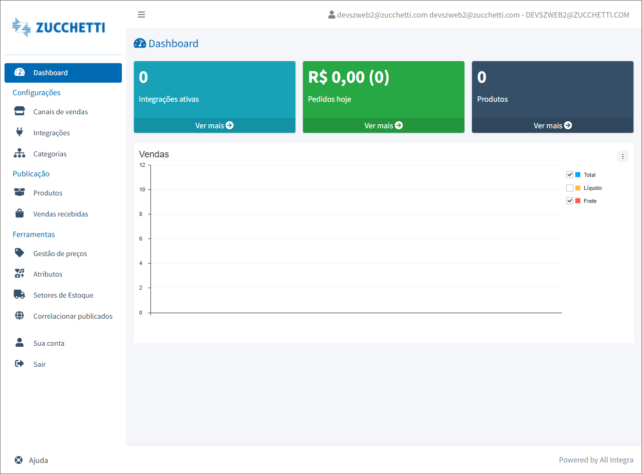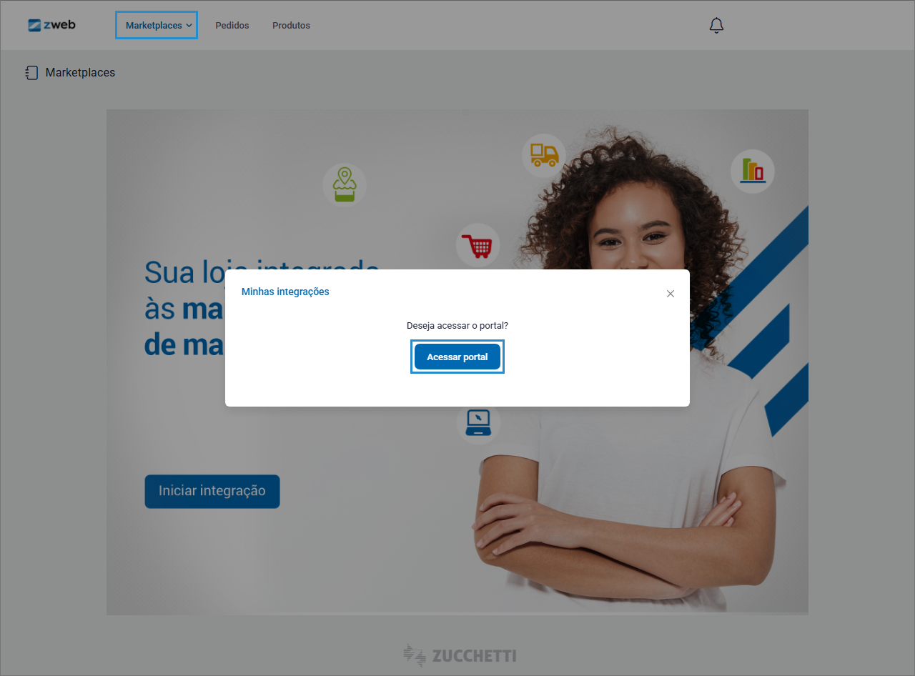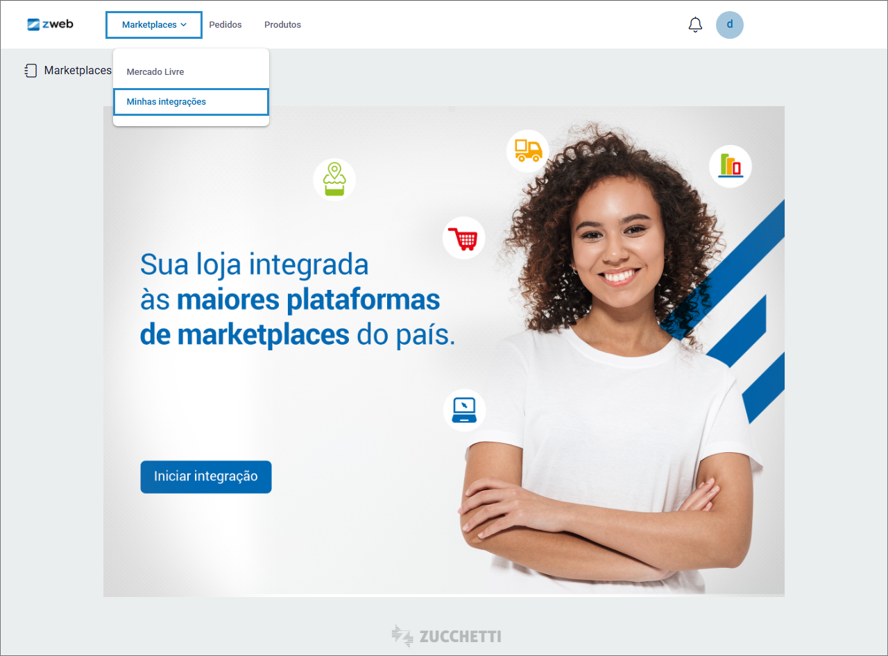 A integração do ZWeb com E-commerce e Marketplace é disponibilizada por meio de um portal para gerenciamento, controle e publicação de anúncios das integrações do sistema com diversos marketplaces.