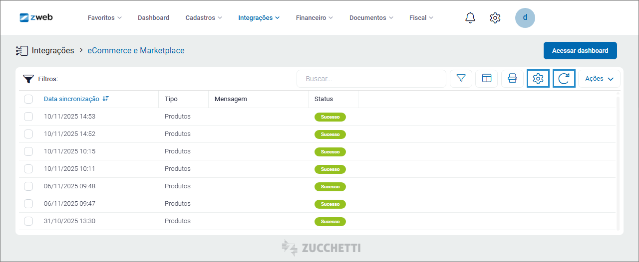 Assim, qualquer alteração realizada nos produtos do sistema ZWeb, como preço, descrição ou estoque, é automaticamente refletida em todos os marketplaces conectados.