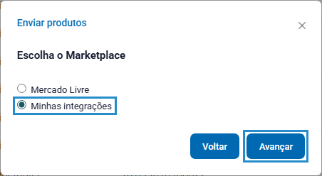 Selecione a opção “Minhas integrações” e clique em “Avançar”.